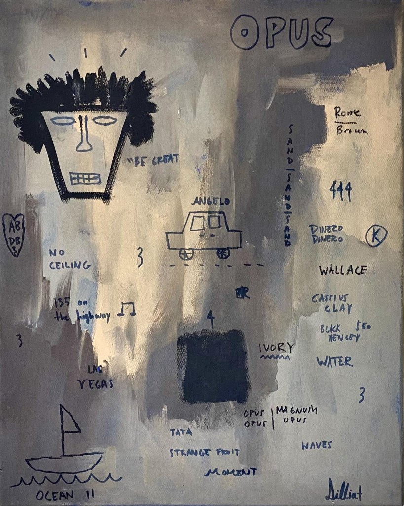 This era of Dilliat’s work reflects an artist in full command of his voice, expanding his universe with relentless creativity, discipline, and intention. Across these pieces — from “The Bluechip” and “Reminiscing” to “Mogul,” “Opus II,” and “Black Entrepreneur” — Dilliat shapes a world where identity, success, ambition, and culture collide into something cinematic and unmistakably his own. These works capture the evolution of a creator who paints both the pursuit and the possession of greatness, documenting the ascent of a man turning vision into legacy. Each piece stands as a testament to Dilliat’s reach, his range, and his rising influence, forming the backbone of the era that solidified him as one of the defining artists of his space.